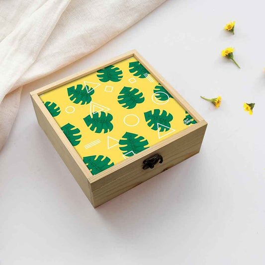 Jewellery Box Makepup Organizer - Green Monstera Hipster Yellow