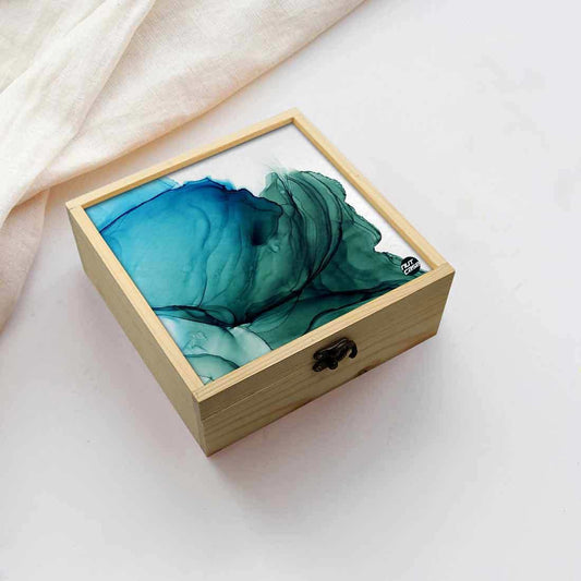 Jewellery Box Wooden Jewelry Organizer - Green Blue Ink Watercolor