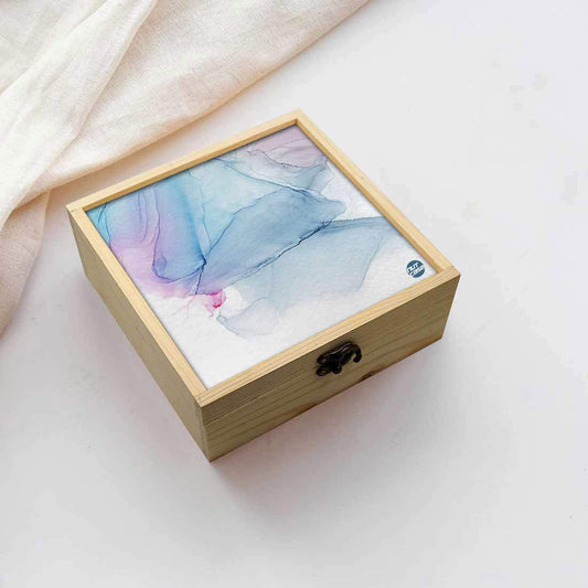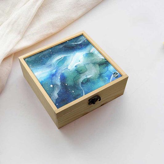 Jewellery Box Wooden Jewelry Organizer - Blue Gray Ink Watercolor