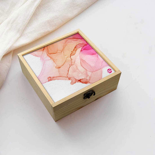 Jewellery Box Wooden Jewelry Organizer - Pink Golden Ink Watercolor