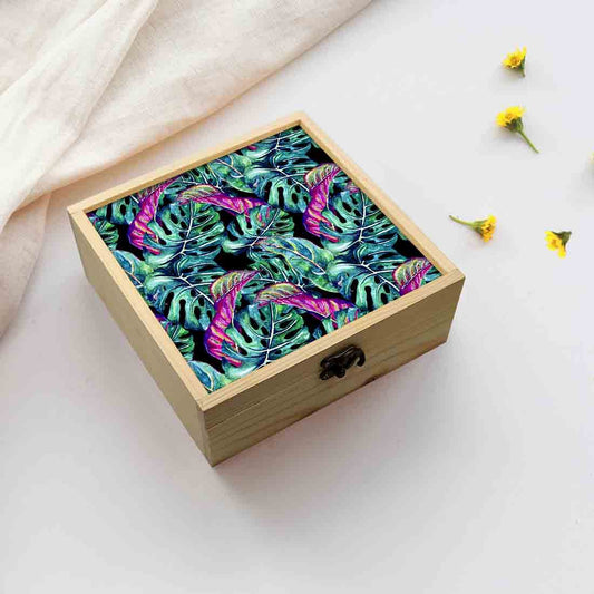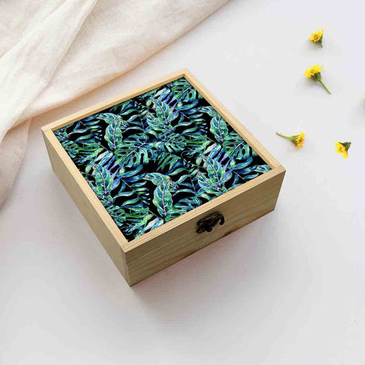 Jewellery Box Wooden Jewelry Organizer - Green Leaf Tropical