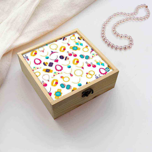 Nutcase bring you his lovely Designer digitally printed wooden lift top jewellery box has three lined sections to keep rings, bracelets and other valuables. Comes decorated with antique metal hook box latches clasp , removable pine wood separators and a beautiful Design top with colorful design elements. Ideal for gifting your girls or women, can be used as a memory box or storage box also. Made with high quality pine wood and measures 8 x 8 x 3 inches.