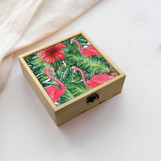 Jewellery Box Makepup Organizer - Hibiscus Flower With Flamingoes