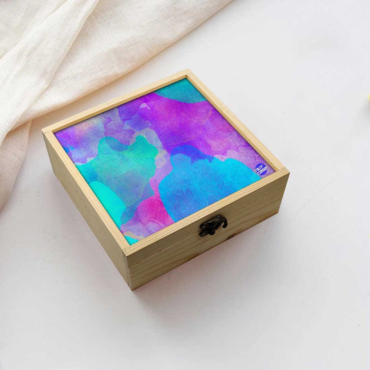 Jewellery Box Wooden Jewelry Organizer - Dark Blue And Purple Ink Watercolor