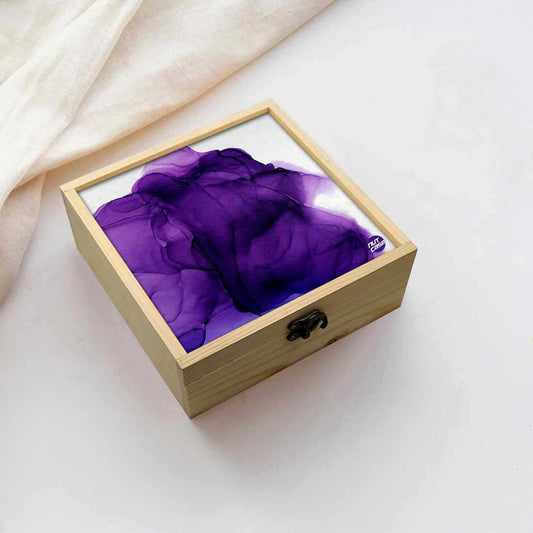 Jewellery Box Wooden Jewelry Organizer - Dark Purple Ink Watercolor