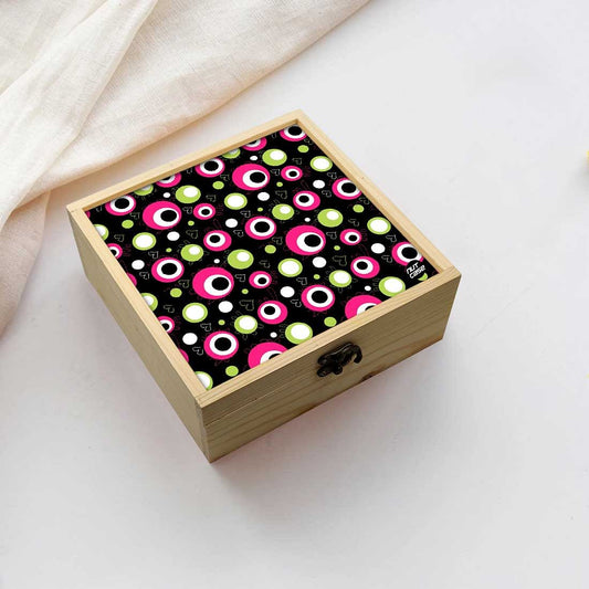Nutcase bring you his lovely Designer digitally printed wooden lift top jewellery box has three lined sections to keep rings, bracelets and other valuables. Comes decorated with antique metal hook box latches clasp , removable pine wood separators and a beautiful Design top with colorful design elements. Ideal for gifting your girls or women, can be used as a memory box or storage box also. Made with high quality pine wood and measures 8 x 8 x 3 inches.