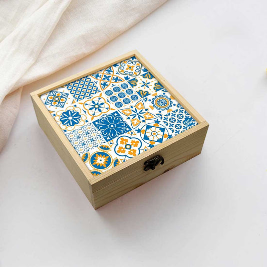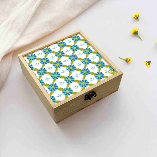 Jewellery Box Wooden Jewelry Organizer - Blue Flower Summer Collection
