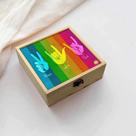 Jewellery Box Wooden Jewelry Organizer - Peace Love Rock