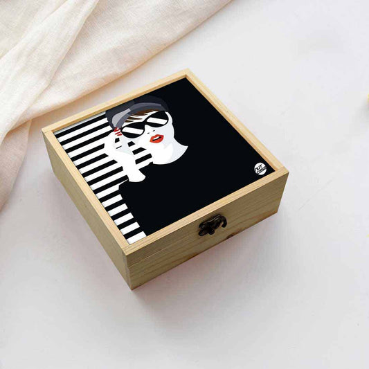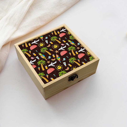 Nutcase bring you his lovely Designer digitally printed wooden lift top jewellery box has three lined sections to keep rings, bracelets and other valuables. Comes decorated with antique metal hook box latches clasp , removable pine wood separators and a beautiful Design top with colorful design elements. Ideal for gifting your girls or women, can be used as a memory box or storage box also. Made with high quality pine wood and measures 8 x 8 x 3 inches.