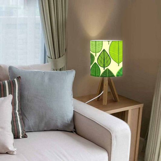 Mini Wooden Tripod Table Lamp For Bedroom Living Room-Green Leaves (3W LED Bulb Included)