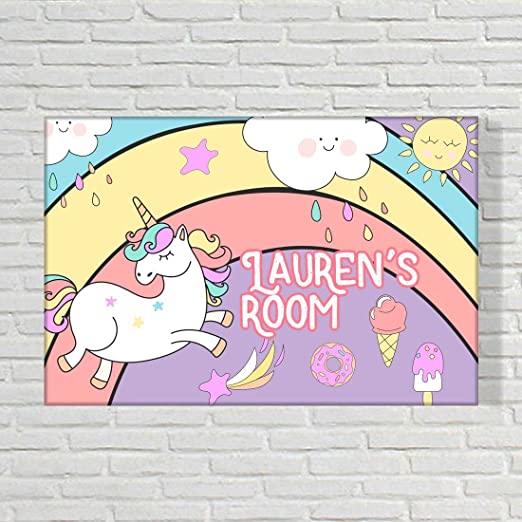 Children's Custom Door Name Plate - Unicorn Rainbows Sunshine