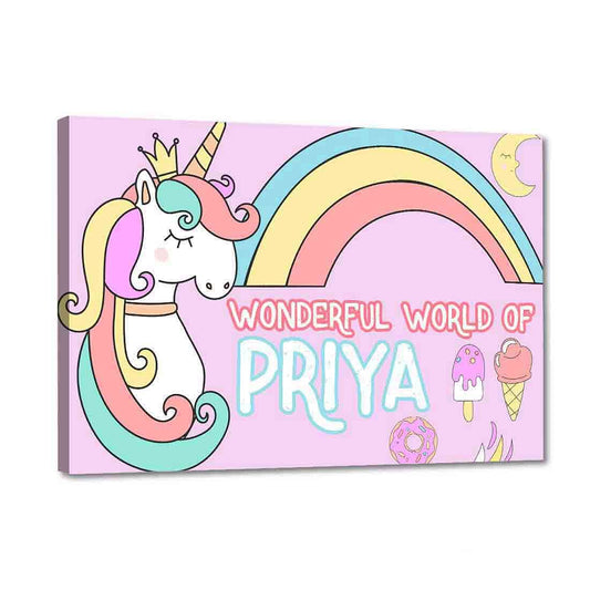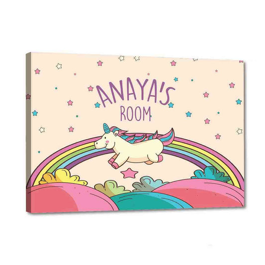 Custom-Made Name Plate for Kids - Magical Unicorn Rainbows
