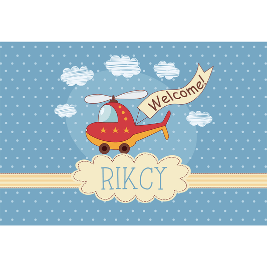Customized Kids Room Name Plate - Helicopter & Clouds.