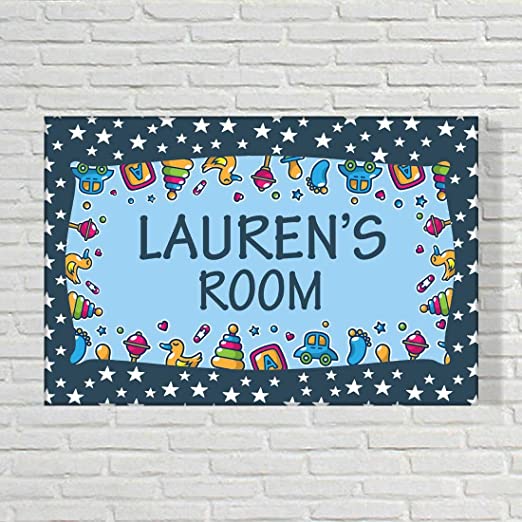 Custom-Made Children's Door Name Plate - Stars & Toy.