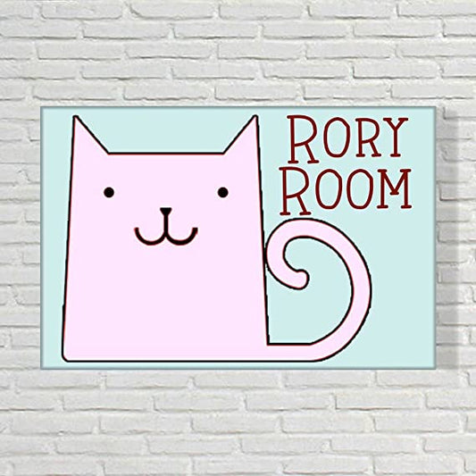 Children's Name Plate Door Sign - Cute Cat Skipping