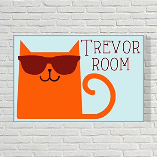 Kid's Room Name Plate Door Sign - Yellow Kitty Cat