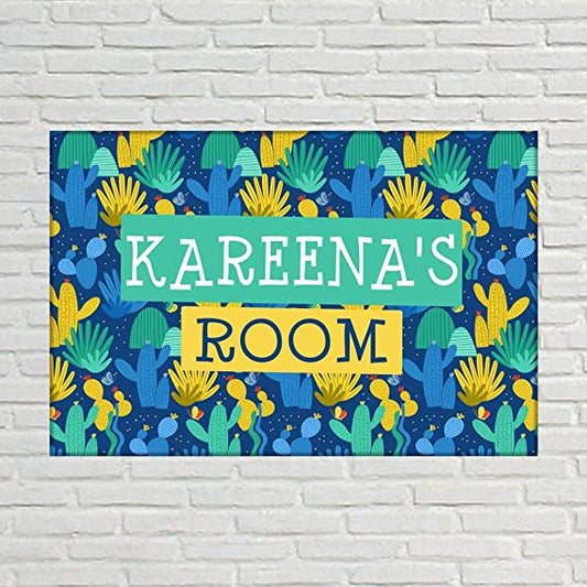 Children's Custom Bedroom Door Name Plate - Cool Cactus Design