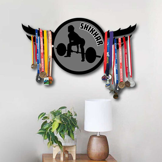 Medal Display with Name - Personalized Metal Medal Holder for Wall - Weightlifters