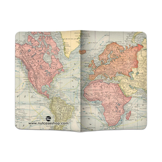 Passport Cover Holder Travel Case With Baggage Tag - Vintage Map