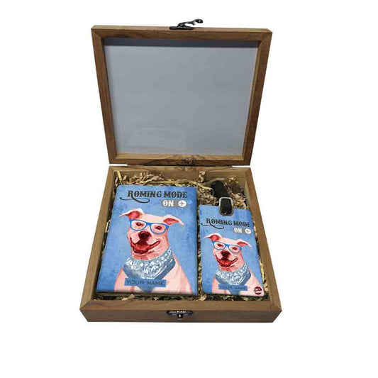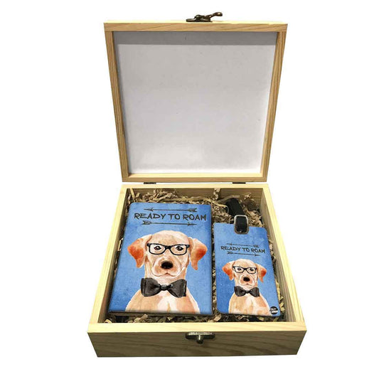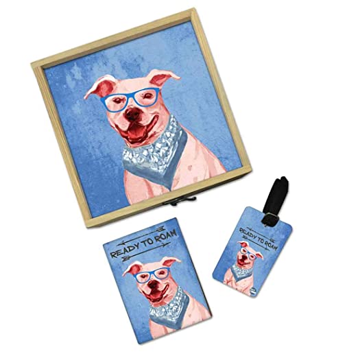 Passport Cover Luggage Tag Wooden Gift Box Set - Hipster Dog