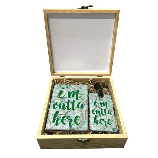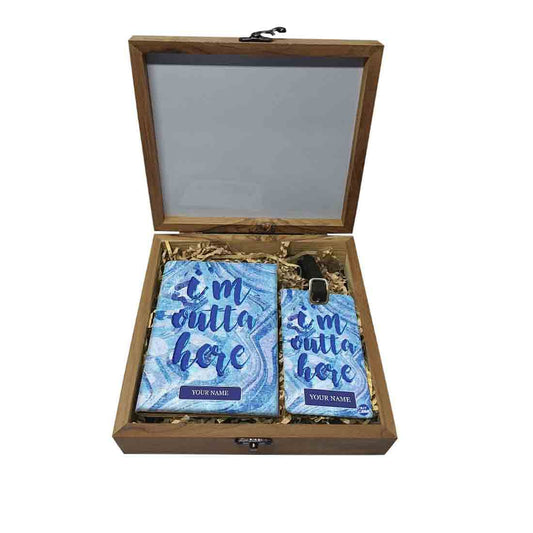 Passport Cover Luggage Tag Wooden Gift Box Set - I Am Outta Here