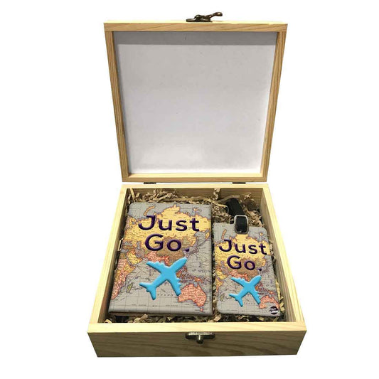 Passport Cover Luggage Tag Wooden Gift Box Set - Just Go