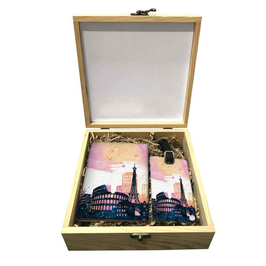 Passport Cover Luggage Tag Wooden Gift Box Set - City