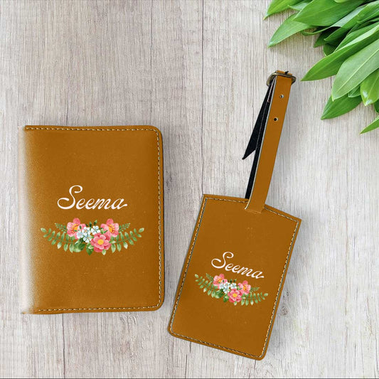 Pu Leather Customized Passport Cover and Luggage Tag Set - Floral