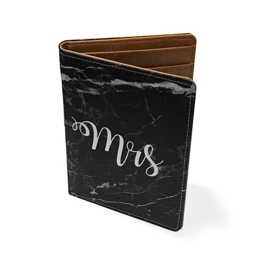 Passport Holder Leather Travel Wallet Organizer -Mrs Black Marble