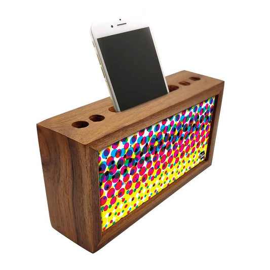 Wooden desktop organizer Pen Mobile Stand - Polka Dots