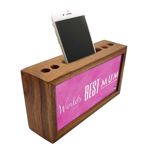 Wooden desktop organiser Pen Mobile Stand - Worlds Best Mum