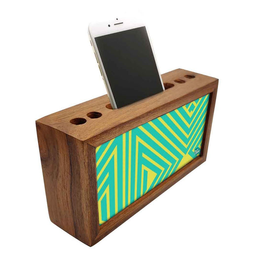 Wooden desktop organizer Pen Mobile Stand - Line Art