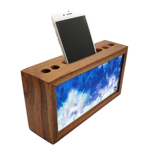 Wooden desk organizer Pen Mobile Stand - Sky Clouds