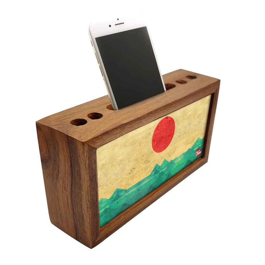 Wooden desk organizer Pen Mobile Stand - Rising Sun