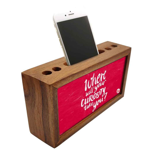 Wooden desk organizer Pen Mobile Stand - Where Will Your Curiosity Take You