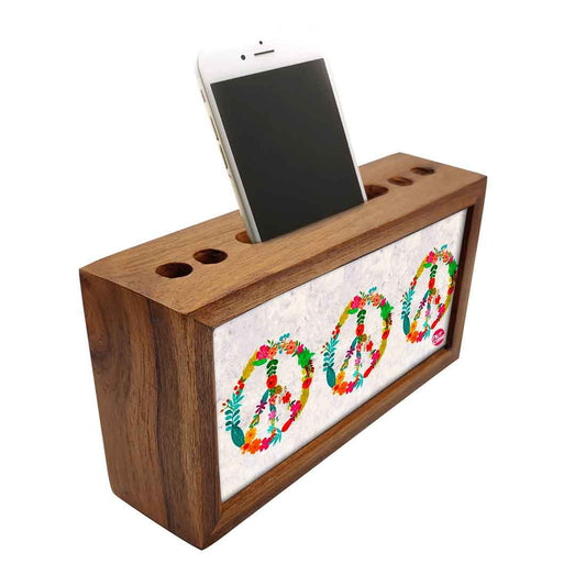 Wooden desktop organiser Pen Mobile Stand - Peace