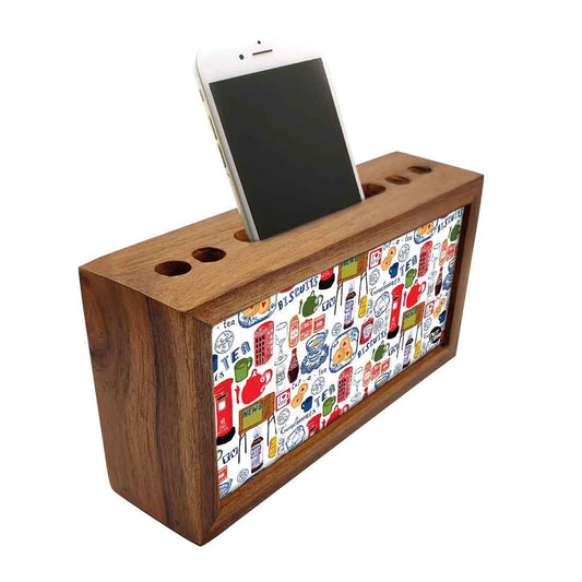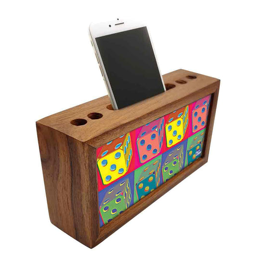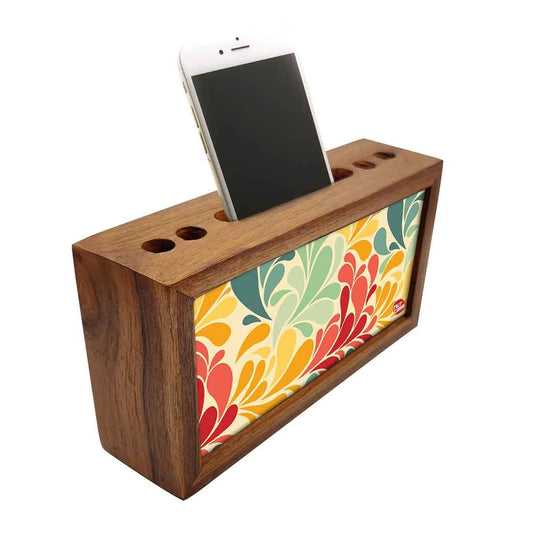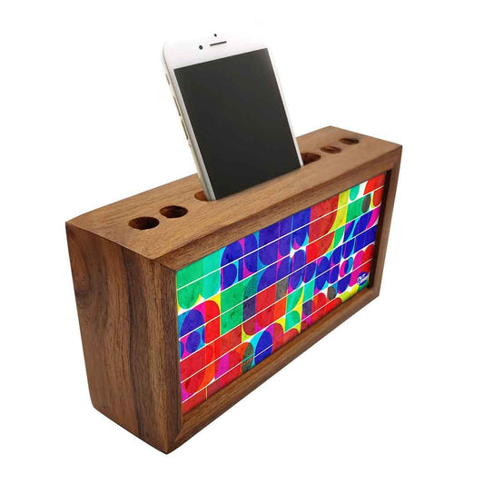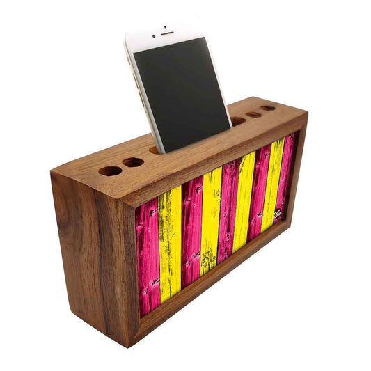 Desk Decor at it's best with our classy designer pen / mobile wooden stand . Made out of durable engineered wood with the design on 2 sides adding the much needed color to office spaces. Perfect for corporate gifting , gifts for boss , office staff and friends.