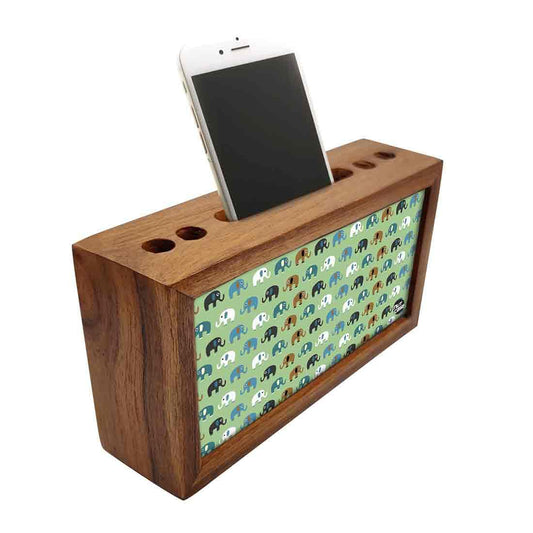 Wooden Pen Holder for Desk - Elephants Yellow