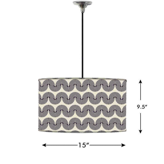 Ceiling Lamp Hanging Drum Lampshade - Black And White Retro Pattern