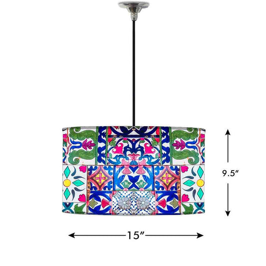 Ceiling Lamp Hanging Drum Lampshade - Beautiful Retro Pattern