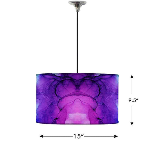 Ceiling Lamp Hanging Drum Lampshade - Purple Blue Ink Watercolor