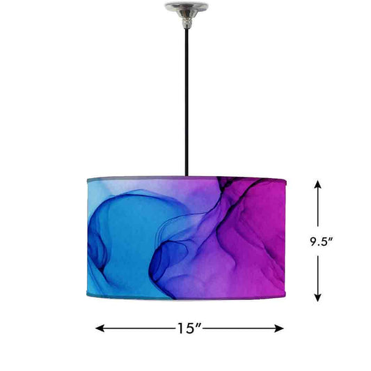 Ceiling Lamp Hanging Drum Lampshade - Blue Purple Ink Watercolor