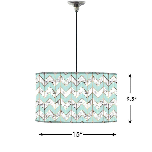 Ceiling Lamp Hanging Drum Lampshade - White and Green Marble Pastle