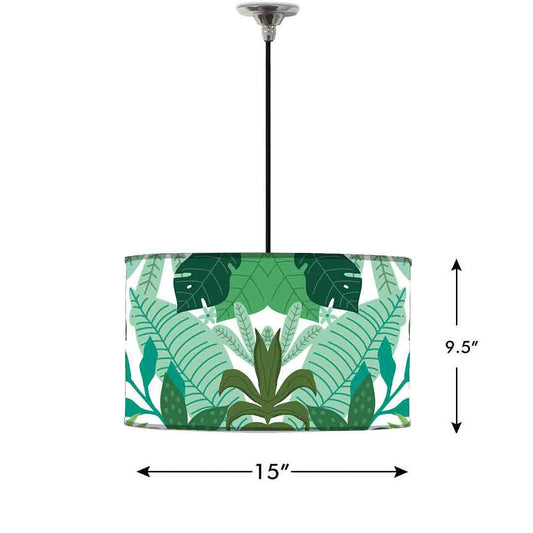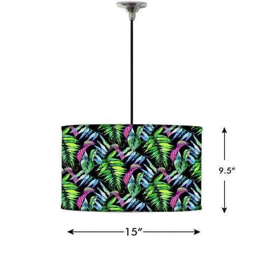Ceiling Lamp Hanging Drum Lampshade - Purple And Green Tropical Leaf