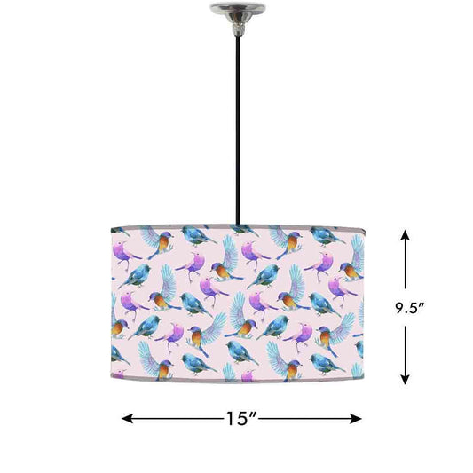 Ceiling Lamp Hanging Drum Lampshade - Watercolor Birds
