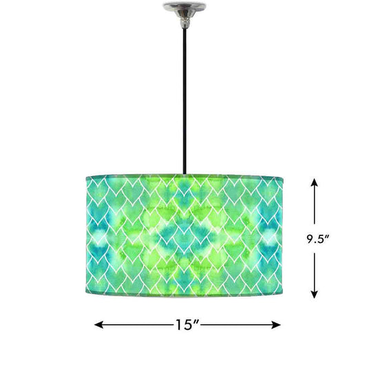 Ceiling Lamp Hanging Drum Lampshade - Green Mermaid Watercolor Pattern