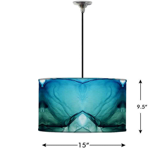 Ceiling Lamp Hanging Drum Lampshade - Green Blue Ink Watercolor
