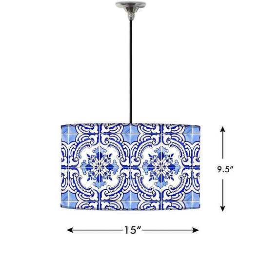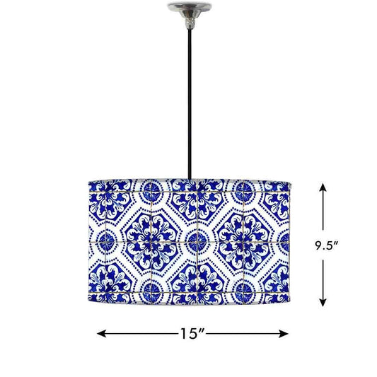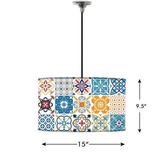 Ceiling Lamp Hanging Drum Lampshade - Floral Spanish Tiles Design