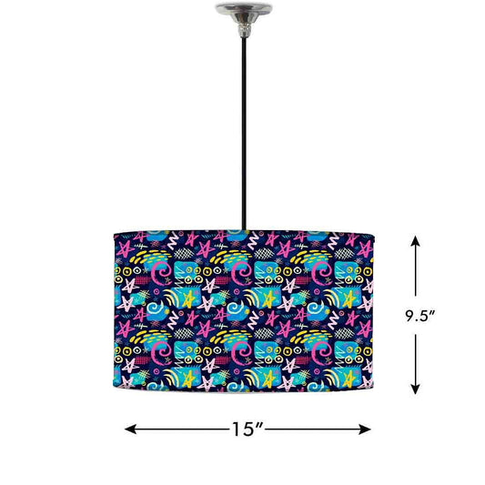 Ceiling Lamp Hanging Drum Lampshade - Multicolor Trendy Pattern