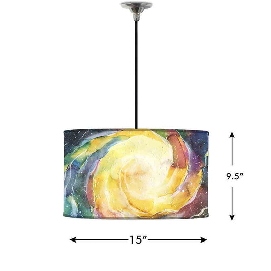 Ceiling Lamp Hanging Drum Lampshade - Space Yellow Watercolor